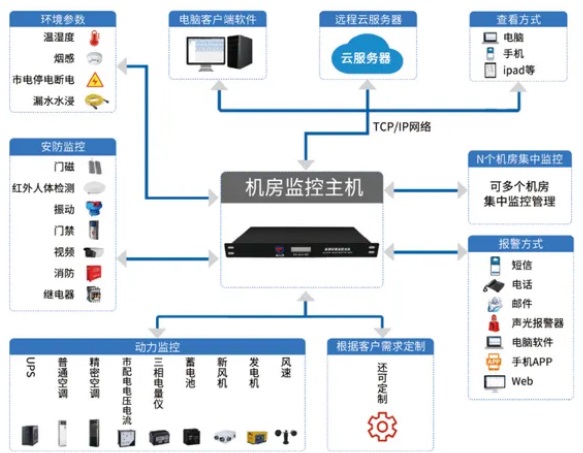 動(dòng)環(huán)監(jiān)控系統(tǒng)24小時(shí)守護(hù)機(jī)房、數(shù)據(jù)中心、智能樓宇、交通局、電信基站等重要地方,功能完善且優(yōu)越,其核心功能包括以下幾方面。 1、統(tǒng)一采集:對(duì)市電、供配電、ups電源、發(fā)電機(jī)、溫濕度、紅外、門禁、煙霧、漏水等設(shè)備以及環(huán)境進(jìn)行采集,并將所有參數(shù)輸送到主機(jī),用于后續(xù)進(jìn)行數(shù)據(jù)處理。 2、信息分析:對(duì)采集到的數(shù)據(jù)進(jìn)行匯總、分析,分析的方式是依據(jù)用戶事先設(shè)置的正常范圍數(shù)值的上限、下限來(lái)判斷。 3、信息儲(chǔ)存:將所有數(shù)據(jù)進(jìn)行分類儲(chǔ)存,儲(chǔ)存的時(shí)限不等。 4、設(shè)備管理:能增加、刪除、修改、查找所監(jiān)控的動(dòng)環(huán)設(shè)備,根據(jù)實(shí)際清潔進(jìn)行監(jiān)控參數(shù)、設(shè)備的調(diào)整。 5、圖形接口:提供將其它3D工具創(chuàng)建的模具進(jìn)行整理導(dǎo)入接口。 6、權(quán)限管理:提供用戶、角色與權(quán)限管理的功能。 7、數(shù)據(jù)接口:提供將其它系統(tǒng)或格式的數(shù)據(jù)導(dǎo)入或?qū)拥慕涌凇?/p> 8、環(huán)境展示:提供機(jī)房所在院區(qū)、機(jī)房外觀與內(nèi)部結(jié)構(gòu)的3D展示功能。 9、資產(chǎn)展示:提供資產(chǎn)設(shè)備的3D展示功能,包括配置信息展示,準(zhǔn)確定位資產(chǎn)位置信息,自動(dòng)盤點(diǎn)資產(chǎn)數(shù)量,實(shí)時(shí)監(jiān)測(cè)設(shè)備的異動(dòng)情況。 10、管線展示:提供鏈路的3D展示功能,包括鏈路以及端口信息,高管線管理水平和故障解決效率。 11、容量展示:提供U位、能耗、載重等數(shù)據(jù)可視化功能。 12、告警展示:可以將所有設(shè)備異動(dòng)情況,第三方平臺(tái)告警信息集中展示,提供統(tǒng)一預(yù)計(jì)機(jī)制。 13、任務(wù)管理:包括盤點(diǎn)任務(wù)、上架任務(wù)、下架任務(wù)、停機(jī)任務(wù)以及維修任務(wù)。 動(dòng)環(huán)監(jiān)控系統(tǒng)極大的方便了機(jī)房管理,使機(jī)房等重要場(chǎng)所更安全、更高效、更便捷的運(yùn)行,實(shí)現(xiàn)企事業(yè)規(guī)范化、智能化、自動(dòng)化管理。