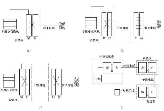 2、水平子系統(tǒng) 水平子系統(tǒng)又稱配線子系統(tǒng),舊稱水平干線子系統(tǒng),由工作區(qū)用的信息插座模塊,每層配線設(shè)備至信息插座的配線電纜、配線架、樓層配線設(shè)備和跳接線等組成。水平布線子系統(tǒng)是整個(gè)布線系統(tǒng)的一部分,其主要作用是將干線子系統(tǒng)線路延伸到用戶工作區(qū)。水平子系統(tǒng)設(shè)計(jì)范圍遍及整個(gè)智能化建筑的每一個(gè)樓層,且與房屋建筑和管槽系統(tǒng)有密切關(guān)系。
