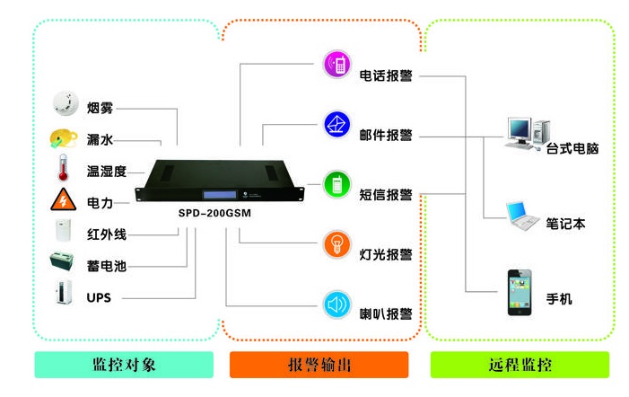 二、動(dòng)環(huán)監(jiān)控的功能 (1)監(jiān)控功能:監(jiān)控功能是動(dòng)環(huán)監(jiān)控系統(tǒng)的最基本功能,指的是對(duì)機(jī)房?jī)?nèi)ups、蓄電池、發(fā)電機(jī)、配電柜、直流電源、空調(diào)、新風(fēng)機(jī)、溫濕度、漏水、防雷器、粉塵、氣體、路由器、交換機(jī)、防火墻、服務(wù)器等的實(shí)時(shí)監(jiān)控。 (2)告警功能:告警功能是動(dòng)環(huán)監(jiān)控系統(tǒng)的保護(hù)傘,機(jī)房任意一環(huán)出現(xiàn)異常,都會(huì)在第一時(shí)間觸發(fā)報(bào)警,以內(nèi)置報(bào)警器、監(jiān)控后臺(tái)彈屏、電話、短信、語(yǔ)音、郵件等方式進(jìn)行報(bào)警,同時(shí)告警可以根據(jù)不同的需求進(jìn)行配置。如告警級(jí)別、告警屏蔽、告警自診斷、告警門限值等。 (3)“五遙”功能:“五遙”指的是遙測(cè)、遙信、遙視、遙控及遙調(diào)。通過“五遙”可對(duì)整個(gè)機(jī)房以及系統(tǒng)進(jìn)行集中監(jiān)控、管理,實(shí)現(xiàn)少人值守或無人值守的目標(biāo)。如各設(shè)備的運(yùn)行參數(shù)、工作狀態(tài)及告警信息等都可遠(yuǎn)程監(jiān)測(cè)、調(diào)控。 (4)配置功能:當(dāng)系統(tǒng)初建、設(shè)備變更或增減時(shí),系統(tǒng)管理維護(hù)人員能使用配置功能進(jìn)行系統(tǒng)配置,如對(duì)設(shè)備參數(shù)的顯示方式、位置、大小、顏色等進(jìn)行配置,確保配置參數(shù)與設(shè)備實(shí)情的一致性。 (5)報(bào)表管理功能:系統(tǒng)能提供所有設(shè)備運(yùn)行歷史數(shù)據(jù)、統(tǒng)計(jì)資料、交接班日志、派修工單及曲線圖的查詢、報(bào)表、統(tǒng)計(jì)、分類、記錄、轉(zhuǎn)載、復(fù)制、打印等功能,供機(jī)房運(yùn)行維護(hù)人員分析研究之用。此外,系統(tǒng)還具備用戶自定義報(bào)表功能。 (6)安全管理功能:主要包括用戶管理、權(quán)限管理、班次管理、門禁管理以及系統(tǒng)日志查詢五個(gè)部分。系統(tǒng)可以提供多級(jí)口令和多級(jí)授權(quán),以保證系統(tǒng)的安全性。