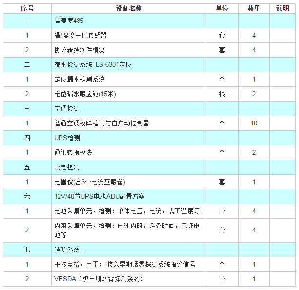 該項(xiàng)目根據(jù)實(shí)際情況對(duì)機(jī)房進(jìn)行了升級(jí)改造,機(jī)房天花板安裝幾個(gè)煙霧感應(yīng)報(bào)警器,墻面安裝溫濕度監(jiān)測(cè)器、漏水檢測(cè)主機(jī)、地面采用復(fù)合防靜電阻燃地板,地板下放設(shè)漏水感應(yīng)繩連接到漏水主機(jī)上,機(jī)柜布線采用三層橋架,做到強(qiáng)、弱電線纜分離。機(jī)房UPS系統(tǒng)進(jìn)行了監(jiān)控檢測(cè)。安全監(jiān)控設(shè)置了視頻監(jiān)控系統(tǒng)及門禁系統(tǒng)。空調(diào)系統(tǒng)采用一臺(tái)精密空調(diào),上送風(fēng)方式,另配置一臺(tái)普通空調(diào)空調(diào)做備用。 動(dòng)環(huán)監(jiān)控是指針對(duì)各類機(jī)房中的動(dòng)力設(shè)備及環(huán)境變量進(jìn)行集中監(jiān)控,一套完善的綜合動(dòng)力環(huán)境監(jiān)控系統(tǒng)可以對(duì)分布的各個(gè)獨(dú)立的動(dòng)力設(shè)備和機(jī)房環(huán)境、機(jī)房安保監(jiān)控對(duì)象進(jìn)行遙測(cè)、遙信等采集,實(shí)時(shí)監(jiān)視系統(tǒng)和設(shè)備、安保的運(yùn)行狀態(tài),記錄和處理相關(guān)數(shù)據(jù),及時(shí)偵測(cè)故障,并作必要的遙控、遙調(diào)操作,適時(shí)通知人員處理;實(shí)現(xiàn)機(jī)房的少人、無人值守,以及電源、空調(diào)的集中監(jiān)控維護(hù)管理,提高供電系統(tǒng)的可靠性和通信設(shè)備的安全性。動(dòng)環(huán)系統(tǒng)對(duì)機(jī)房?jī)?nèi)溫濕度、市電、漏水、消防安保的監(jiān)測(cè)報(bào)警建立起一套較完整的機(jī)房動(dòng)力環(huán)境監(jiān)管體系,實(shí)現(xiàn)對(duì)機(jī)房運(yùn)行環(huán)境的科學(xué)管理。監(jiān)測(cè)發(fā)現(xiàn)機(jī)房故障隱患,由機(jī)房管理系統(tǒng)匯集各種告警信息,通過短信、語音等方式發(fā)送給管理科人員。做到及時(shí)分析和預(yù)見設(shè)備故障,及時(shí)發(fā)現(xiàn)和排除設(shè)備故障及隱患,特別是停電等重大故障隱患。能夠有效降低設(shè)備損壞情況的發(fā)生,減少維修的時(shí)間和費(fèi)用,降低運(yùn)營(yíng)成本,增強(qiáng)機(jī)房的安全防范。