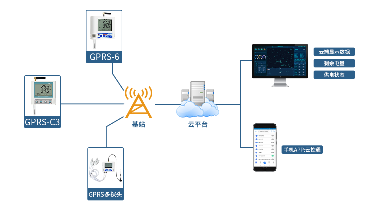 無線GPRS溫濕度監(jiān)控系統(tǒng)是一種基于GPRS數(shù)據(jù)傳輸技術(shù)和無線通信技術(shù)的溫濕度監(jiān)測和數(shù)據(jù)記錄系統(tǒng),簡單的說就是一種用于監(jiān)測環(huán)境溫度和濕度的設(shè)備,該系統(tǒng)通過內(nèi)置的溫濕度傳感器和無線通訊模塊將數(shù)據(jù)傳輸?shù)皆贫?,并可通過手機 APP 或網(wǎng)頁進行實時監(jiān)測和數(shù)據(jù)分析,通過isP-CMS主系統(tǒng)實時地監(jiān)測和記錄被監(jiān)控環(huán)境的溫度和濕度狀況,用戶可以通過客戶端軟件實時地、遠程地查看和管理環(huán)境數(shù)據(jù)。 因為無線、遠程、實時、便攜的優(yōu)點,無線GPRS溫濕度監(jiān)控系統(tǒng)被廣泛應(yīng)用在各類物資倉儲、生產(chǎn)車間和實驗室等需要嚴格控制溫濕度的場所,如醫(yī)藥、食品、化學(xué)、電子、制藥等產(chǎn)業(yè),尤其是在冷鏈物流、食品保鮮和生產(chǎn)環(huán)境監(jiān)控方面具有獨特的應(yīng)用優(yōu)勢。 無線 GPRS 溫濕度監(jiān)控系統(tǒng)通常由以下幾個部分組成: 溫濕度傳感器(STU-TH485):安放在需要監(jiān)測的地方,用于實時獲取環(huán)境的溫度和濕度等數(shù)據(jù)。 網(wǎng)關(guān):將傳感器采集到的數(shù)據(jù)通過無線 GPRS 技術(shù)傳輸?shù)皆贫恕?/p> 云平臺:接收并處理傳感器上傳的數(shù)據(jù),用戶可通過手機 APP 或網(wǎng)頁進行實時監(jiān)測和數(shù)據(jù)分析。 報警系統(tǒng):根據(jù)用戶設(shè)定的閾值,當溫濕度超過預(yù)設(shè)范圍時,會發(fā)出預(yù)警信息通知用戶。 這種溫濕度監(jiān)控系統(tǒng)能夠幫助用戶在需要時及時調(diào)節(jié)環(huán)境溫濕度,通過建立數(shù)據(jù)監(jiān)測系統(tǒng)和定時提醒機制,利用ET-2101聲光報警模塊、STU-M1206B短信報警模塊、ISP-CMS-P郵件模塊等報警模塊對可能存在的儲物品溫度異常進行預(yù)警,并且定位溫度、濕度異常的具體時段和時間,幫助企業(yè)實現(xiàn)風險預(yù)警和生產(chǎn)控制,大大提高了生產(chǎn)效率和產(chǎn)品質(zhì)量。