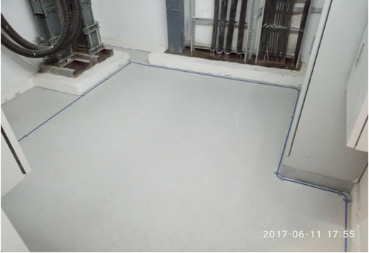 漏水檢測繩是由一條檢測液體泄漏的感應線和一個帶定位報警的控制器構(gòu)成的,當泄漏發(fā)生時,感應線纜將信號送往控制器,經(jīng)微處理后,將泄漏位置上傳到中央控制中心,并同時報警。 安裝事項: 1、 漏水線纜施工時用專用膠貼固定在檢測區(qū)域的地板表面。因漏水線纜設計為螺旋結(jié)構(gòu),2條黑色導線與地表面有約0.5-1mm距離。