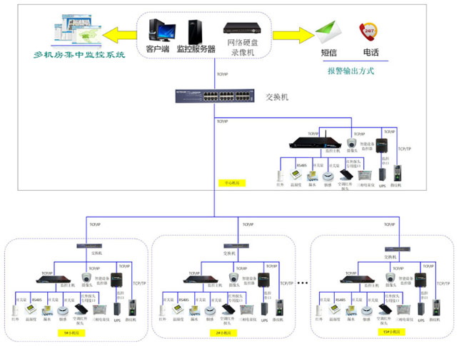該系統(tǒng)的功能特點: a.分布式管理:各地機房相對獨立,形成一個完整的管理系統(tǒng),用戶可以查看、統(tǒng)計、備份本地機房監(jiān)控的所有數(shù)據(jù)。 b.集中監(jiān)控:系統(tǒng)不僅能夠?qū)蝹€機房內(nèi)各種動力設(shè)備、環(huán)境設(shè)備及系統(tǒng)的狀態(tài)信息、報警信息、圖像信息等進行完整地集中監(jiān)控,并能夠?qū)Ψ植荚诟鞯氐亩鄠€機房實現(xiàn)跨區(qū)域集中監(jiān)控管理。 c.高可靠性:系統(tǒng)采用模塊化設(shè)計,充分保證系統(tǒng)在擴容、升級時無間斷安全運行。 d.遠(yuǎn)程管理:管理者可通過任意終端方便地遠(yuǎn)程查看各機房內(nèi)設(shè)備、系統(tǒng)的運行狀況。 e.日志管理:系統(tǒng)自動對操作人員、操作內(nèi)容、操作時間、故障點、故障內(nèi)容、故障處理、時間等信息進行完整記錄,并可對這些記錄進行多條件查詢,為管理者提供完備的系統(tǒng)操作維護資料。 f.安全管理:系統(tǒng)可對不同角色分配不同的操作權(quán)限,并進行分組管理、授權(quán)管理。防止系統(tǒng)信息泄露。 g.輔助分析:系統(tǒng)可根據(jù)需要對各系統(tǒng)設(shè)備的運行狀態(tài)提供實時曲線和歷史曲線報告,方便管理者直觀分析系統(tǒng)運行狀況。 h.報表輸出:系統(tǒng)內(nèi)嵌套強大報表系統(tǒng),不僅能滿足常用的日報表、周報表、月報表,還支持用戶自由訂制個性化報表,還可與通用報表軟件實現(xiàn)報表的導(dǎo)入導(dǎo)出。 i.動態(tài)編輯:系統(tǒng)處于運行狀態(tài)時,允許用戶直接在界面上對各子系統(tǒng)或設(shè)備進行添加、修改、刪除等操作,并實時上傳,保證所有的修改都能即時生效,最大限度保證整個系統(tǒng)數(shù)據(jù)完整和高效運行。 j.超強兼容:系統(tǒng)具備兼容各種品牌、型號設(shè)備和子系統(tǒng)的功能。 k.操作簡易:圖形化全中文操作界面,使用戶的學(xué)習(xí)和使用極為簡易。 l.多功能報警:報警無盲點,系統(tǒng)對報警事件按優(yōu)先級的高低進行處理;可根據(jù)報警級別提供不同的報警方式:現(xiàn)場聲光、微信、短信、電話語音、郵件等告警模式;同時告警信息可限次播放,且可在告警時間間隔上進行設(shè)置。 多機房集中監(jiān)控系統(tǒng)讓機房能實現(xiàn)智能感知、獨立運行、數(shù)圖融合、遠(yuǎn)程運維,成為一個綠色數(shù)據(jù)中心,目標(biāo)包括動力、環(huán)境、視頻、人員、安防、設(shè)備、能耗管理于一體的整體系統(tǒng),實現(xiàn)實時監(jiān)控、事前預(yù)警、事中報警、事后取證的安全管理模式,打造一個先進可靠的智能機房。 系統(tǒng)實現(xiàn)了對各機房設(shè)備的統(tǒng)一監(jiān)控與管理,極大地減輕了機房維護人員的工作負(fù)擔(dān),同時又大大提高了整個系統(tǒng)的運行可靠性、穩(wěn)定性、兼容性、可擴展性,實現(xiàn)了機房科學(xué)管理,真正使無人值守機房成為現(xiàn)實。